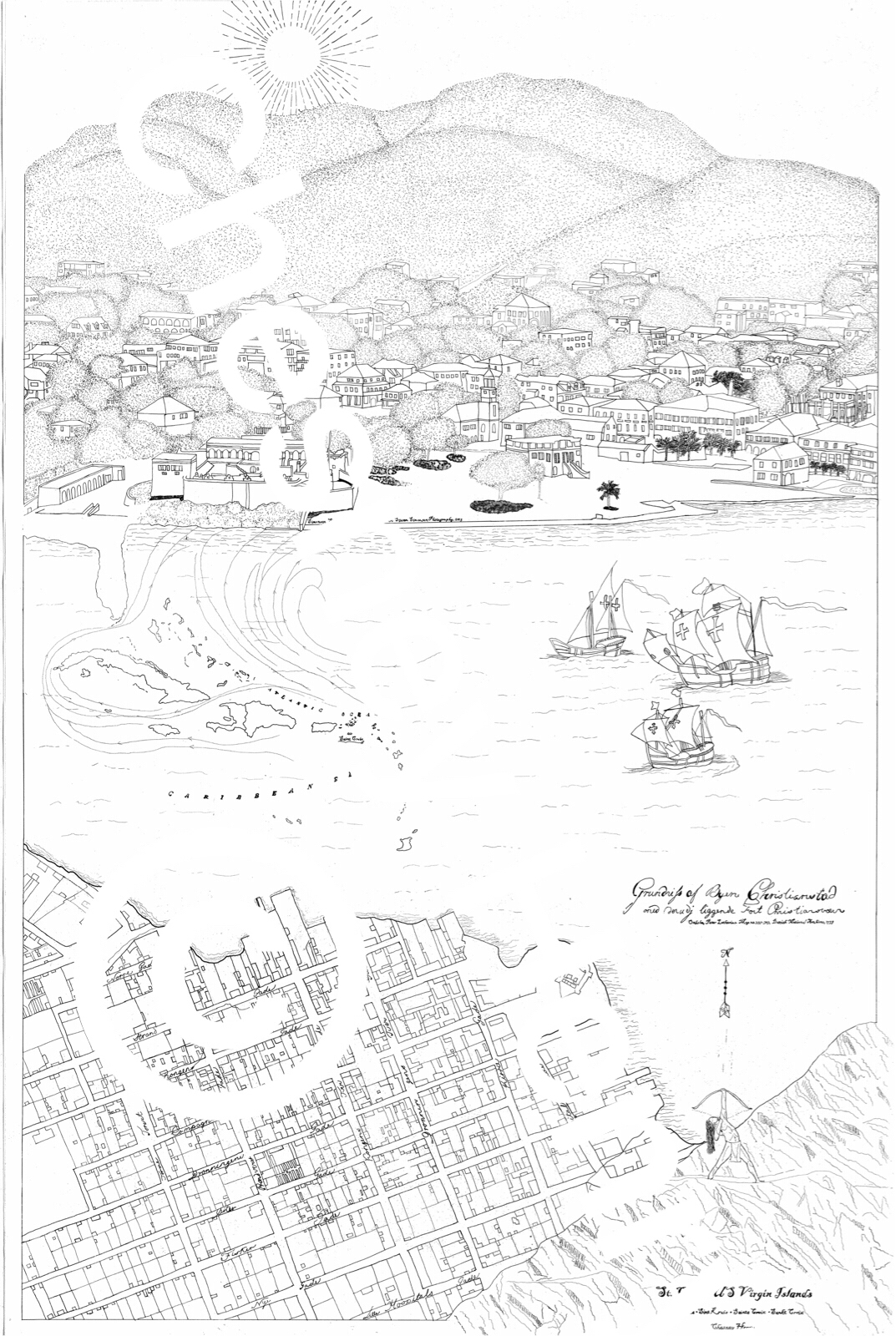 Hometown Map. Ink on Mylar 24" x 36". Hand drawn.