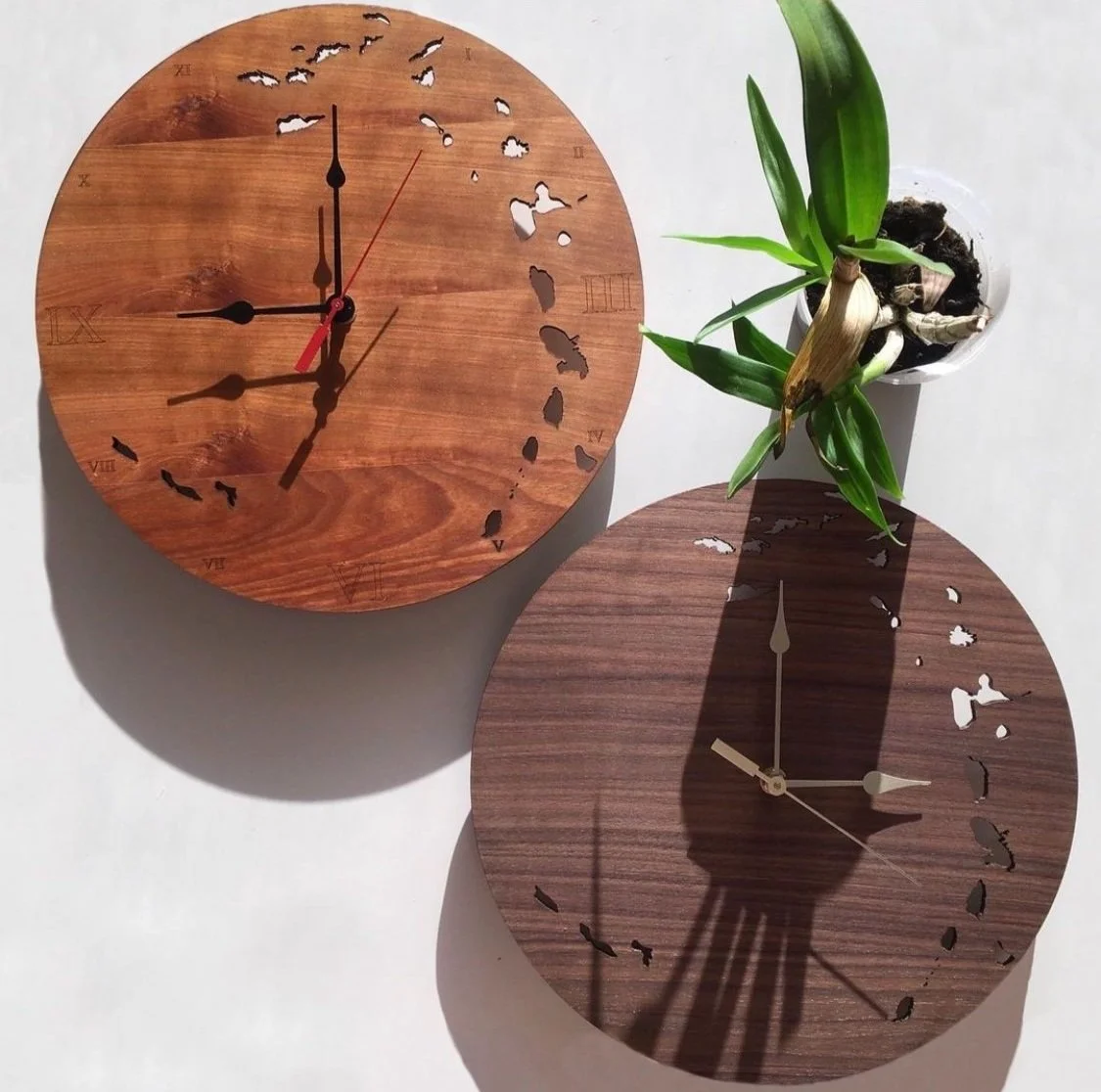 This was born out of a random idea, like most of my ventures. I designed the clock in AutoCAD (yep, I drew every! single! line!) then sent it out to a third party to be CNC’ed. Once I had the clock base, there was a bit more labor on my end such as sealing it to protect the wood veneer, then I chose the motors and hands, and assembled the entire thing. It can take up to 3 days for me to create one clock but it is such a fun process.