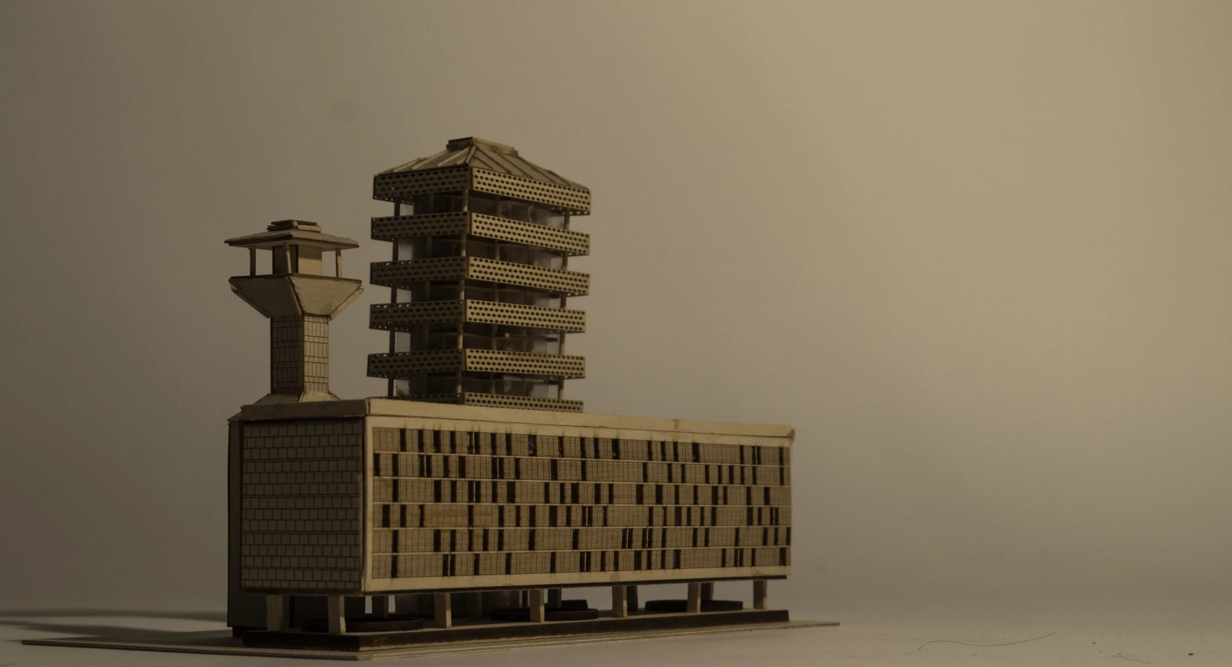 Set on Miami Beach, 300 Alton Road, this design studio project called for the design of a housing complex that combined 75% social housing apartments (studio-1 bedroom) and 25% luxury apartments. Working with a partner, we designed for a "utopia" where these two social classes could live separately, but mingle daily. Our design consisted of two separate buildings, an elegant bar building for social housing, and a Miami art deco style tower for luxury apartments. To "bridge the gap" between the luxury apartments and social housing, we designed shared amenities located underneath the luxury apartments, to which social housing patrons could access via bridges connecting the two buildings. Taking inspiration from Rem Koolhaas' "De Rotterdam" we aimed to add to the Miami skyline by altering the height of each building in the complex.